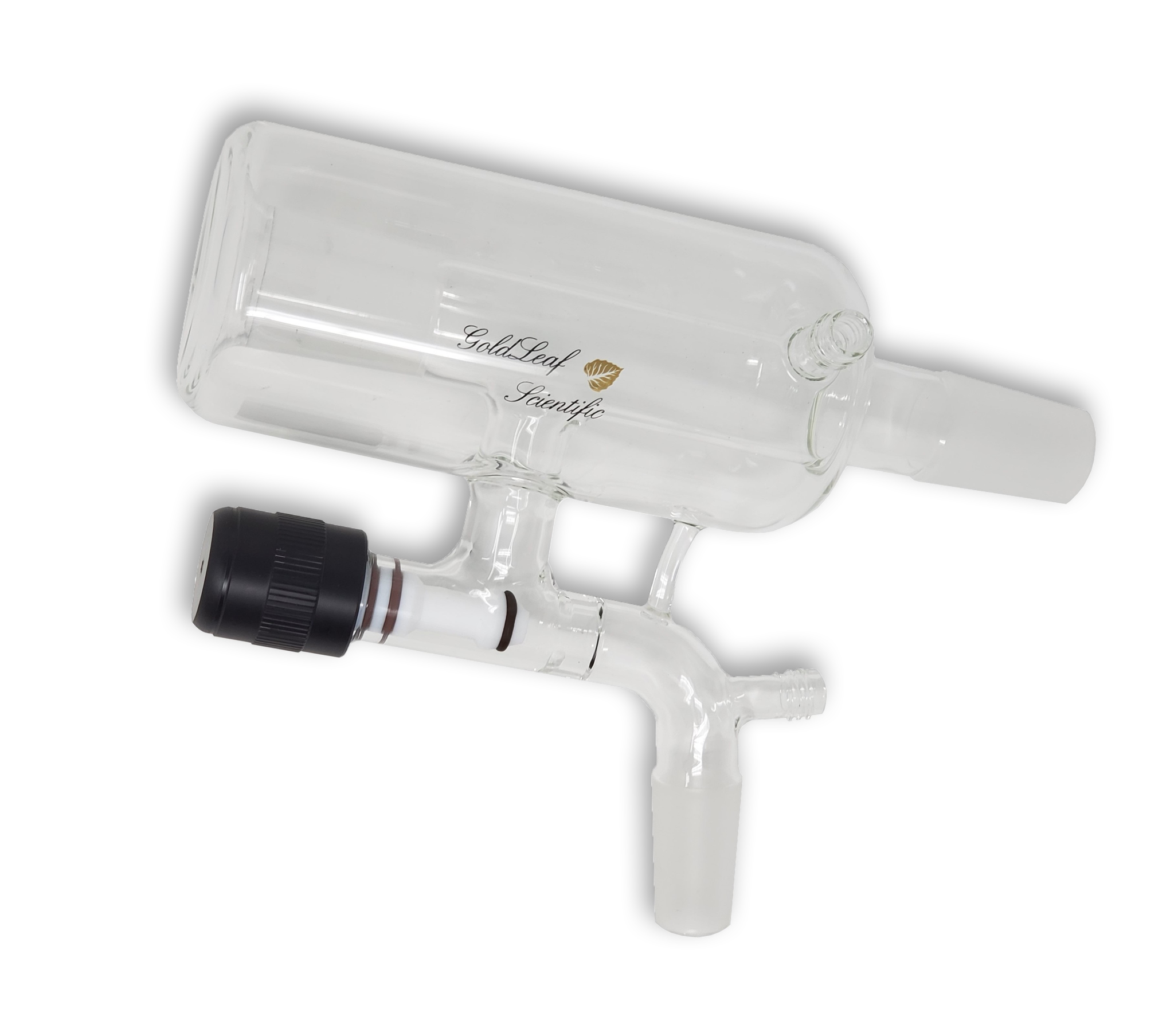 Jacketed vacuum takeoff valve for short path distillation. Prevent clogs with a heated valve that allows distillate to flow right through. Multiple sizes.