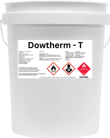 Shopping Cart (0) Quotes (0) Express Ordering All Categories > Chemicals and Consumables > Heat Transfer Fluids > Dowtherm Heat Transfer Fluids > Item # 3176 All CategoriesAll Categories Chemicals and ConsumablesChemicals and Consumables Heat Transfer FluidsHeat Transfer Fluids Dowtherm Heat Transfer FluidsDowtherm Heat Transfer Fluids Item # 3176 Item # 3176, 5 Gallon (gal) Capacity Dowtherm T Heat Transfer Fluid 31765 Gallon (gal) Capacity Dowtherm T Heat Transfer Fluid Request Information Email This Page Download PDF Download PDF Printable Page List Price $595.00 Qty. Add To Cart Request Quote /Asset/dowtherm-t-5-gal.png /Asset/dowtherm-t-5-gal.png Close Window Dowtherm T heat transfer fluid. Bulk sizes available 1 to 55 gallon drums. Versatile heat transfer fluid, lab grade from Goldleaf Scientific. Unit of Measure Imperial Metric Both Technical Specs Capacity N/A 5 gal Harmonized System (HS) Code N/A 85167910