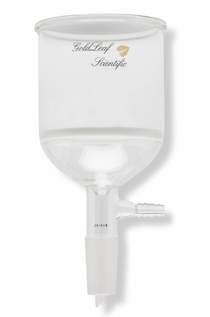 Glass Buchner funnel with coarse fritted disc for catching sediment and filterable material. Use filter paper for easy removal of bulk filtrate.